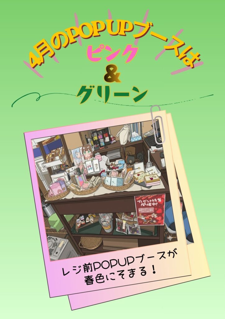 レジ前が、ピンクとグリーンの春色に染まります!